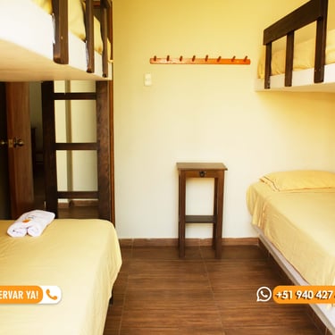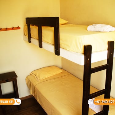 Bungalow 2 dormitorios contiene 2 literas , 1 cama doble y tiene una capacidad para 6 huéspedes.